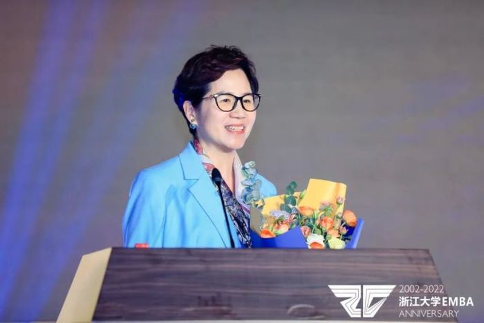 万事利集团董事长屠红燕 “回首这二十年,我本人和企业都是在浙大这些年中成长并发展起来的。万事利和我在这二十年里完成了传承,更完成了第一阶段的创新。”万事利集团董事长屠红燕是浙大EMBA项目2005年秋季班的学生,也是副班长,她与彼时的班长毛磊齐齐现身会场,分外感慨,“唯有感恩,在浙大的平台上,我们收获了老师的谆谆教诲,更收获了同学之间情同手足的情谊。十八年来,我们经常在一起学习、交流、分享;老师们在万事利成长过程中也始终帮助、支持与爱护,管理学院陈凌教授在写《传承》那本书的时候,尤其充满感情,对我、我的企业发展和传承提供了非常多的指导。” 再登高瞻远 如今,百年未有之大变局铺陈在眼前,国内与国际复杂环境交织,深刻影响着经济的发展与企业的未来。“面对这样的新变局,我们仍在思考:现阶段与下一阶段,中国需要什么样的商学教育?企业家应当怎么办?”浙江大学管理学院党委书记朱原坦言,这让他们对浙大EMBA教育的使命有了进一步的认识,需要培养胸怀“国之大者”的创新型、领导型人才。