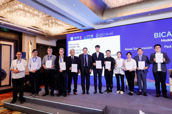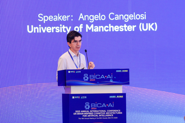 在主旨演讲环节,英国曼彻斯特大学机器学习和机器人学教授、曼彻斯特机器人与人工智能中心联合主任和创始人安杰洛·坎格罗西,美国密歇根大学综合认知中心联合主任约翰·莱尔德,美国道尔动态对象语言实验室公司首席科学家保罗·罗伯逊,伦斯勒理工学院的认知科学与计算机科学教授罗恩·孙,以及意大利萨莱尔诺大学计算机科学副教授安东尼奥·列托分别围绕《用于语言学习、信任和心理理论的发展机器人》《MR结合认知架构和生成模型》《人工社会智能、人工独立智能与人工智能的未来》《认知结构与神经符号模型和双过程理论的相关性》《用最小认知网格避免行为陷阱》等主题发表演讲。