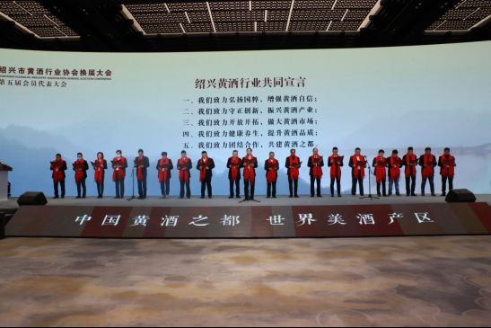 绍兴黄酒企业代表发表《绍兴黄酒行业共同宣言》。沈鸿泉摄 徐明光最后表示,绍兴黄酒要严格标准、提升品质、打响品牌、合力营销、共拓市场、打击仿冒。从商标、品牌、形象、影响整体宣传。黄酒是中国酒文化中的一缕陈香,绍兴要依托千年古城历史文化,在把黄酒从产品变成商品,从商品变成消费品的“新营销”中,在中华传统文化复兴的路上,彰显千年绍兴黄酒文化的独特魅力。
