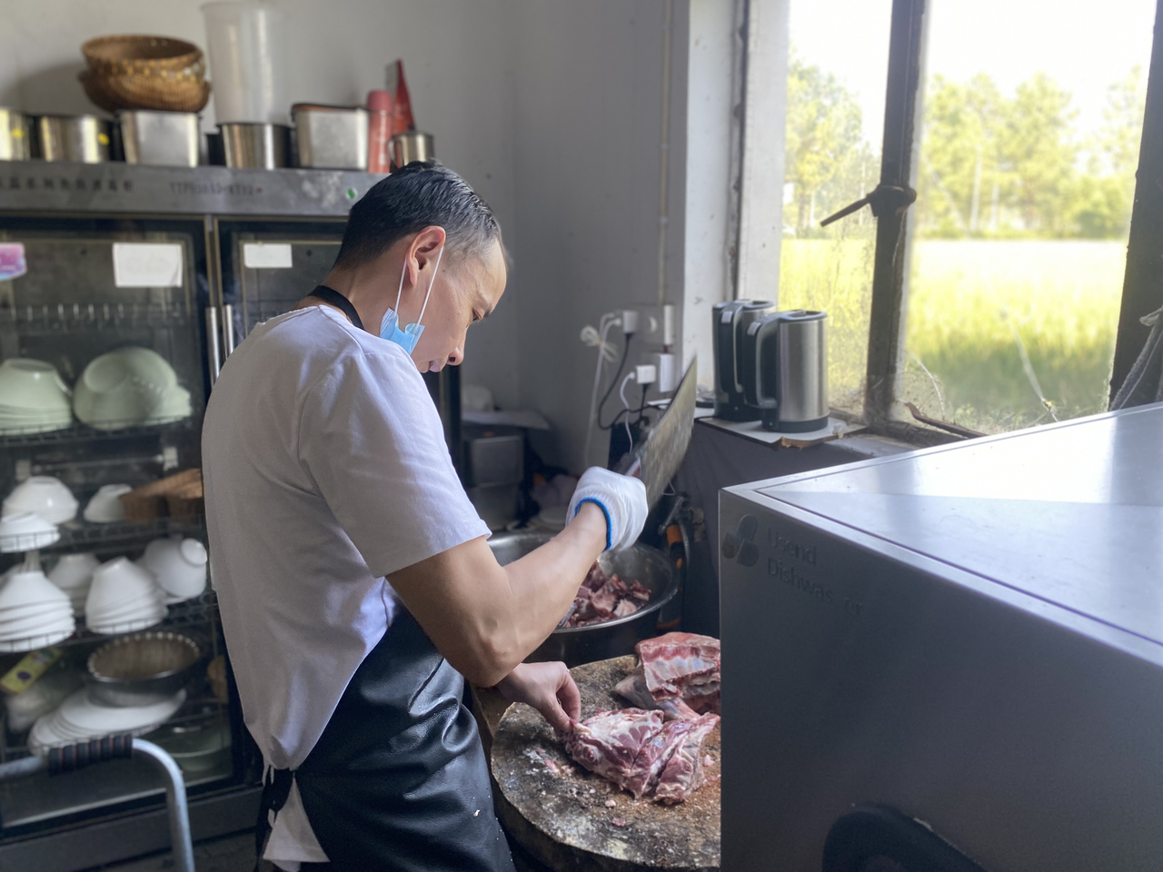 儿子去年的事,对老徐触动挺大。今年3月,72岁还闲不住的老徐在丽水半山腰的徐家老宅,新开了红烧羊肉面馆。