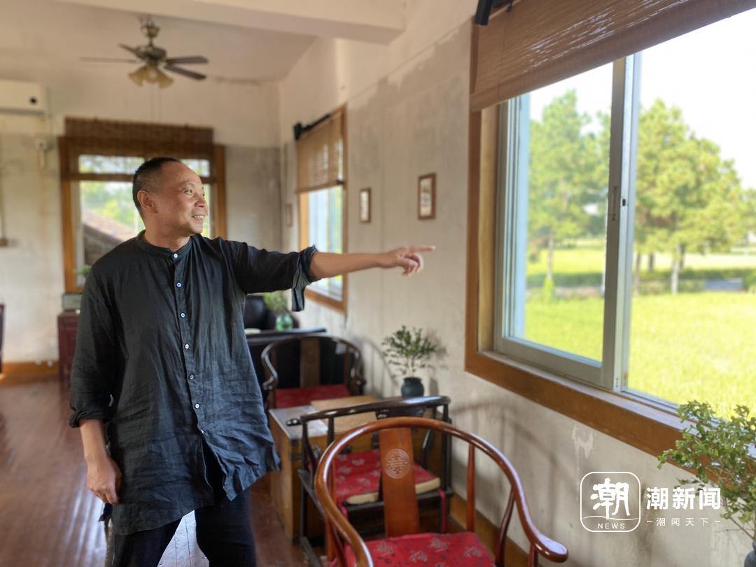 店主敲开一楼的窗户,窗外的稻田好像被按上画框,成了店里最美的风景。