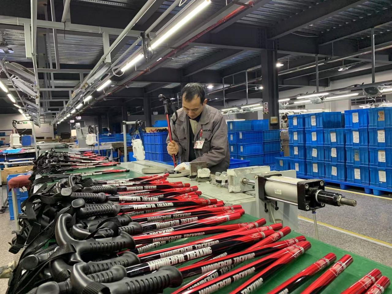 宁海兴达旅游用品有限公司生产车间内部。受访者供图 在浙江宁海,滑雪杖产业集群也初具规模,“全国出口的10根滑雪杖,7根产自宁海”并不夸张。国内冰雪运动发展,让相关企业看到了新机遇,宁海兴达旅游用品有限公司就是其中之一。 “原先我们只做出口生意,这几年开始‘两条腿走路’,国内市场份额年均增长10%。”公司行政部经理刘文说,目前公司积累了近40家国内客户,包括黑龙江、吉林、新疆等地的滑雪场和培训机构。 冰雪场上,除了专业运动器材之外,服装也是吸引眼球的加分项。