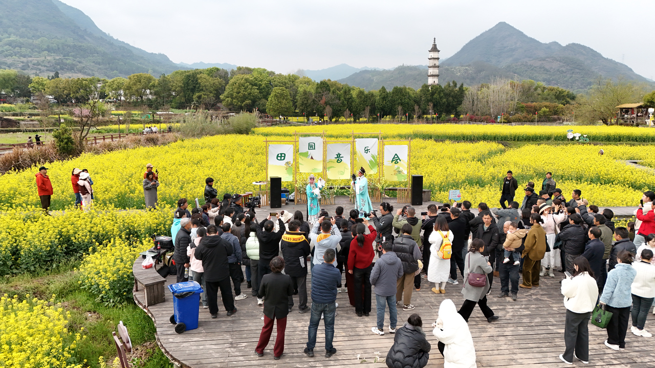 新叶“三月三”农耕文化体验季期间,游客在田野间欣赏新叶昆曲 潮新闻客户端 通讯员 饶卫华 摄 3月31日是农历“三月三”,于建德市大慈岩镇新叶村而言,这一天的重要性不亚于过年—— 清晨,锣声响起,叶氏祭祖队伍开始游村,这是这座800余年历史的古村约定俗成的习惯。青瓦白墙、古寺古塔,错落聚合的古村落内,同姓不同派的村民穿着各色服饰,按照传统“十献礼”的流程,为村祈福;还有穿着戏服的孩童,有模有样地唱着新叶昆曲…… 如今,这份热闹不只属于新叶村民,这鲜活的一幕幕通过互联网直播被送到世界的各个角落——当日,各平台直播观看人数实时最高突破55万人次,而在线下特意赶来见证“古村新韵”的游客也超过5000人次。