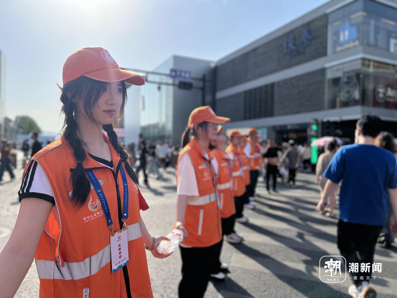 大一学生陶彦烨在“最美人墙”中。谢春晖/摄 3月,陶彦烨第一次体验“最美人墙”服务。“那天也热,人比今天少点。”从下午一直服务到晚上,有点累的陶彦烨觉得很值得,因为“在做一件很有意义的事”。 5月1日当天的志愿者中,大部分是和陶彦烨一样的大学生,也有退休工人、高中生和上班族。
