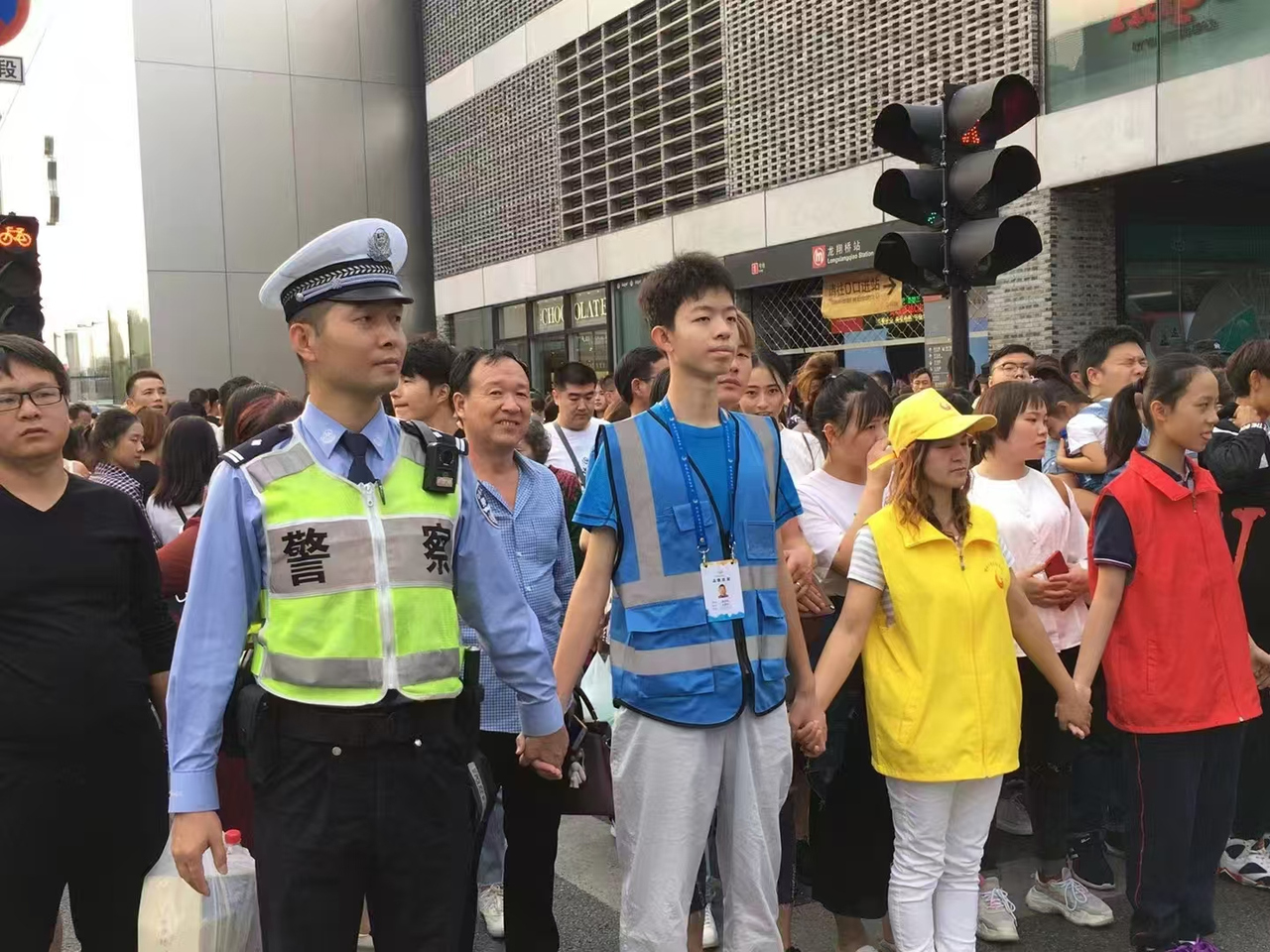 “最美人墙”。谢春晖/摄 2个月前,她在学校志愿服务清单中看到“最美人墙”的选项,马上就报名。