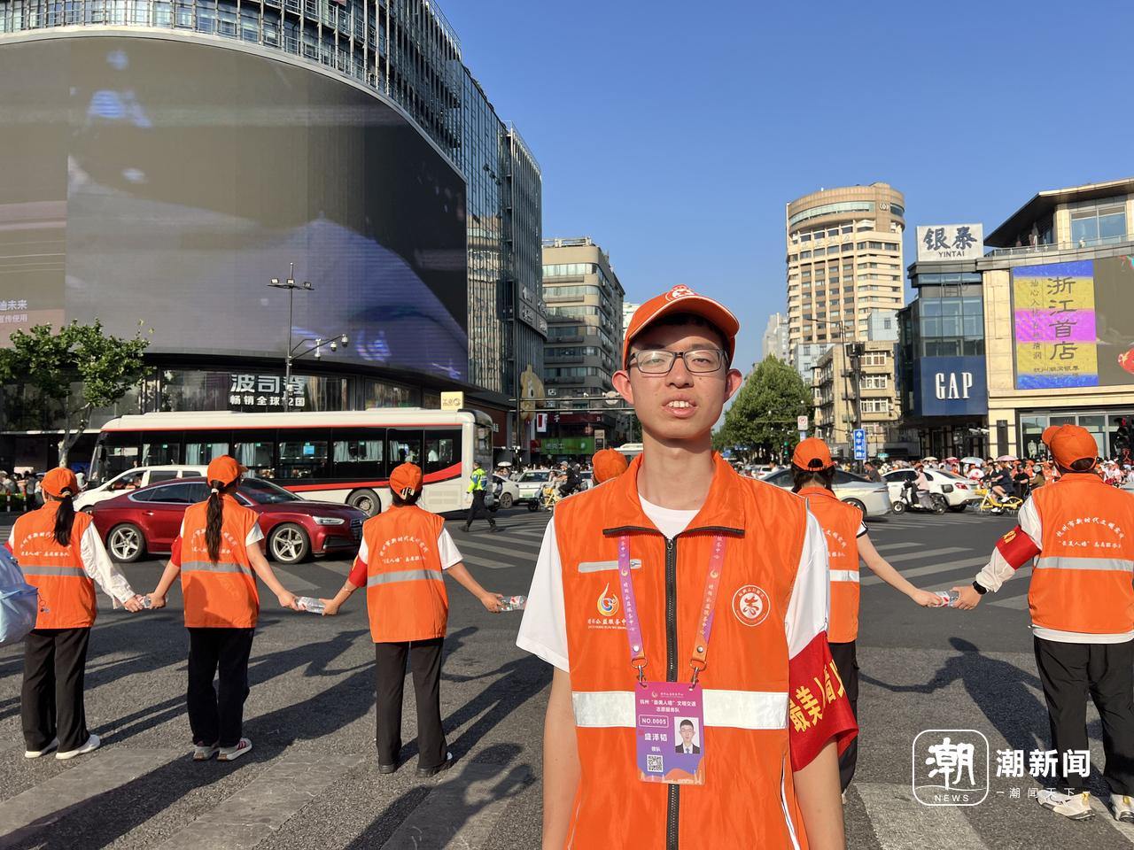 “最美人墙”已成为风景线。谢春晖/摄 浙江工业大学大一学生陶彦烨忍不住自豪。 这是她第二次参与“最美人墙”志愿活动。 刚来杭州上大学,陶彦烨和同学坐公交车路过这个路口,曾遇到过“最美人墙”。她一下子被击中:“杭州这座城市挺美好的,游客过马路都能被温柔守护。”