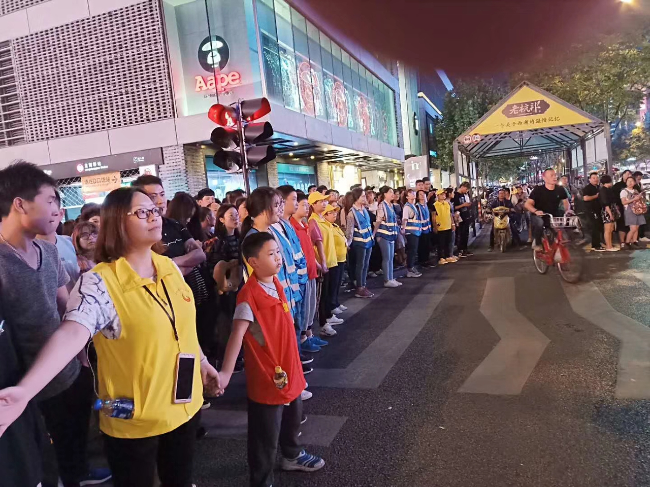 “最美人墙”的十年合影。谢春晖/摄 沈廷冲目光追随的这道人墙迎来了十岁:“从最初的8个人到现在的30万人次,十年,我们不仅坚持下来,还变成了一道风景线。” “哇,最美人墙。”人群中有人举起手机。 “几个方向过马路的人不会挤在一起,非机动车也不会乱窜。”第一次来杭州的一位游客被震撼了:“这个场面非常壮观,不愧是杭州。”