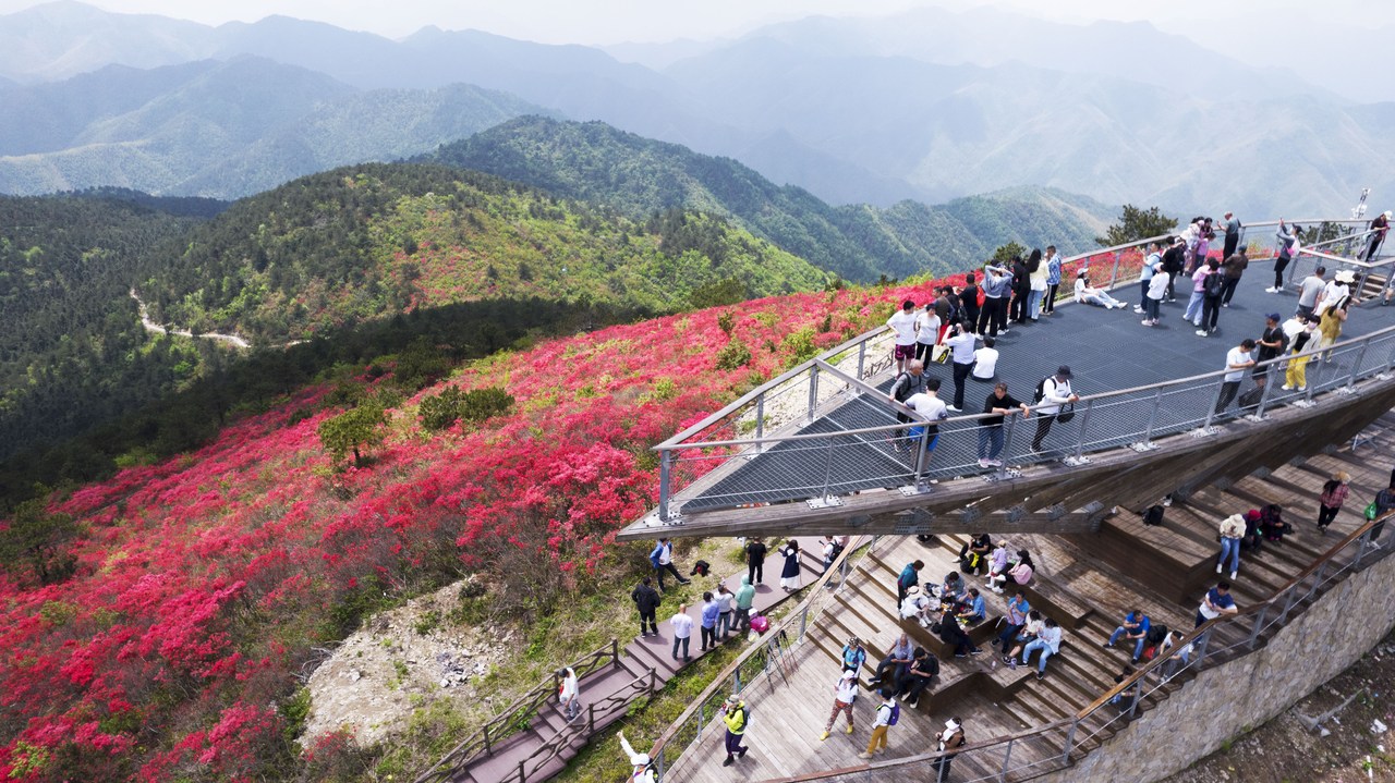 发表时间:2025-05-07 07:58 “五一”假期,不少外地游客冲着“山里看海”这一新鲜词,选择到云和县石塘镇长汀村逆向游。在这里,远望是潋滟旖旎的青山绿水,近看是清爽干净的淡水沙滩。 时下,City Walk热潮还未退去,Country Walk(村游)又开始流行。在丽水,“村游”资源尤为丰富,今年“五一”假期,散落在群山之中的各个村落,更是抓住这一机会,各显其能招引五湖四海的游客。 这段时间,遂昌县高坪乡茶树坪村漫山遍野的杜鹃花竞相绽放,绵延20余里,宛如一幅绚丽的画卷。以“花”为媒,茶树坪村在“五一”期间打造了万亩杜鹃赏玩长廊,吸引了众多游客前来观赏、摄影。5天假期,每天有数千人次争相来此登山打卡。
