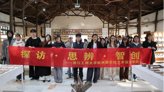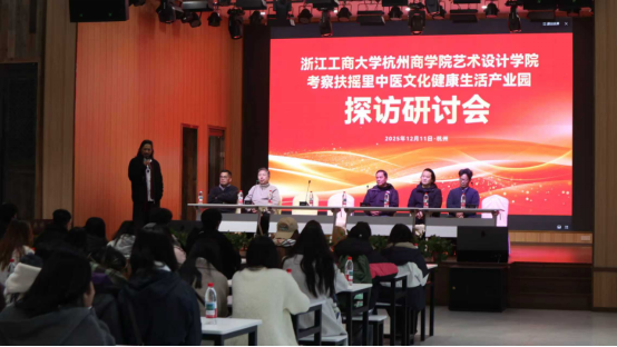 发表时间:2025-12-15 19:53 12月11日上午,位于杭州市余杭黄湖镇的扶摇里中医药文化健康产业园迎来浙江工商大学杭州商学院艺术设计学院视觉传达专业2301/2302班60余名学生,他们在导师俞文荣的带领下,开展项目实地考察调研课的现场。 近些年来,就业市场内卷严重,毕业生的前景不确定性极大增加。作为和传统产业关系密切的视觉艺术专业,当下应该怎么做才能让学生能够在未来立于不败之地? 学院结合艺术设计类专业特色,将实践课程的课堂直接“搬” 到黄湖镇扶摇里中医文化健康生活产业园。 活动以该产业园的公共导视设计需求为切入点展开,通过实地考察、专家授课、文化体验等多维度多层次的教学活动,探索视觉设计与新经济形势背景条件下的市场实际需求的结合之路。