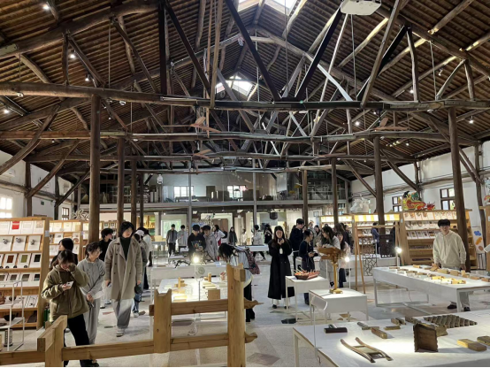 午后,师生们前往余杭艺术设计村青山融设计图书馆考察,馆内传统木作、编织、刺绣工艺与现代化设计的融合成果,让学生们开阔了设计思路,激发了创新构想。
