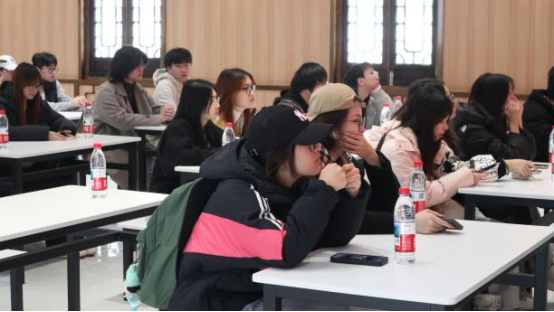 杭州建达标识系统工程公司总经理戚卫民作为导视标识设计领域的资深从业者,结合大量实战案例,为学生讲授了公共导视设计的实操要点与项目落地经验,搭建起理论知识与产业实践衔接的桥梁。 为帮助学生更深刻理解中医文化的内涵,俞文荣老师还特别邀请“山水清音国乐队” 开展现场演奏。七千年前的古埙与现代手碟空灵和鸣、古琴的古朴淡远与箫的幽远虚静、古筝的清亮悦耳沁人心脾,这场跨越时空的音乐对话,让学生沉浸式感受到中国传统文化与中医文化的独特魅力,为设计创作积累了文化灵感。