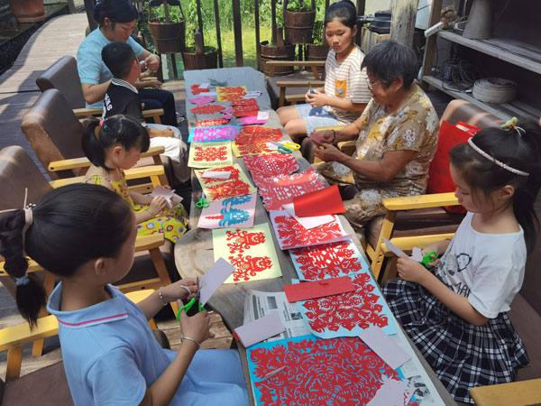 蚕花剪纸非遗传承人高训琴向小朋友展示剪纸作品。姚萍摄 为了传承与保护蚕花剪纸,钟管镇组织当地学校、群众等开展常态化非遗体验活动,结合幸福邻里、文化走亲等开展各类非遗文化活动,让非遗文化“飞入寻常百姓家”。通过蚕花剪纸艺术进校园的校本实践,开展蚕花剪纸课程,增加了学生对民间传统艺术的了解,不但符合学生的身心发展需要,还拯救了濒临失传的手艺。(彭方方) 来源:人民网-浙江频道